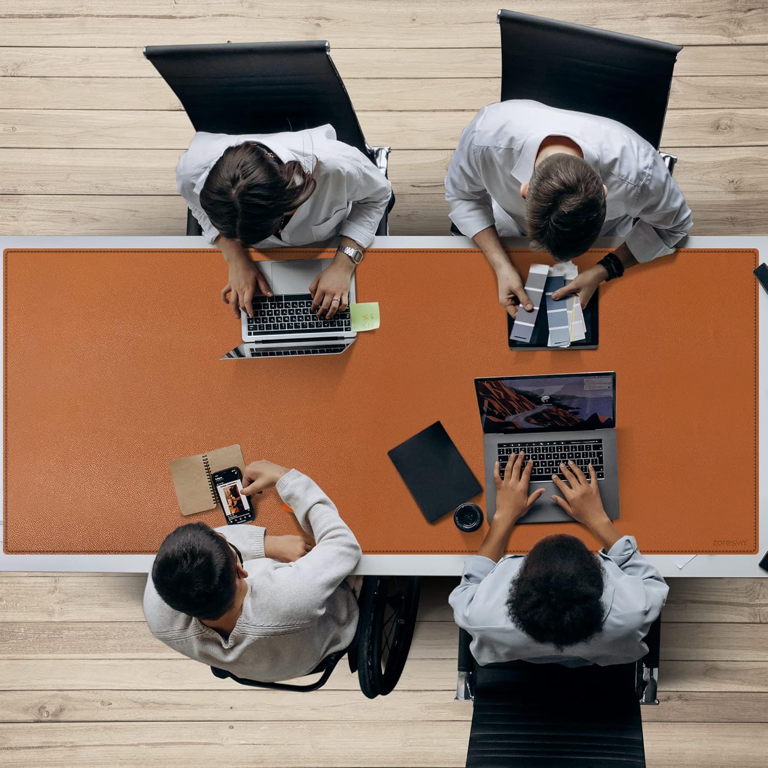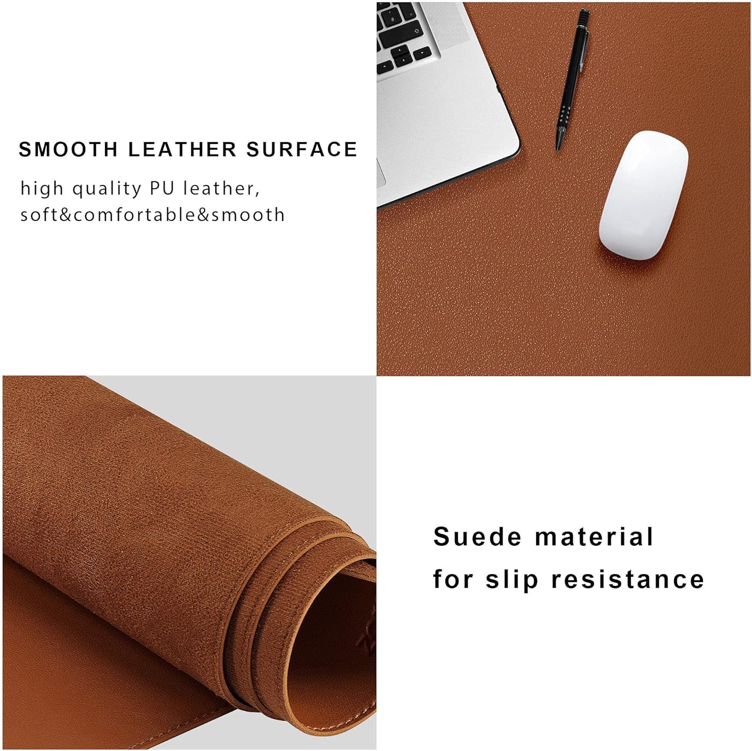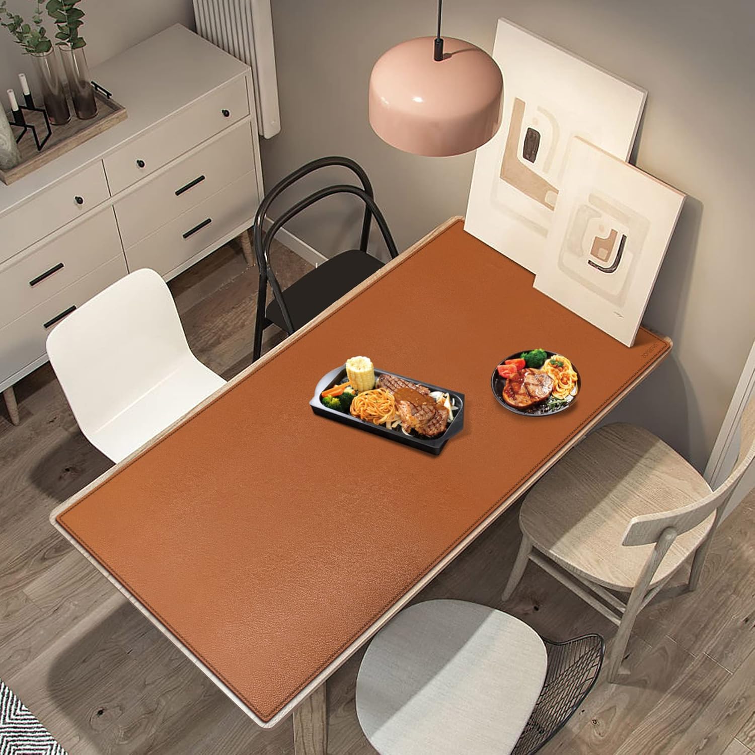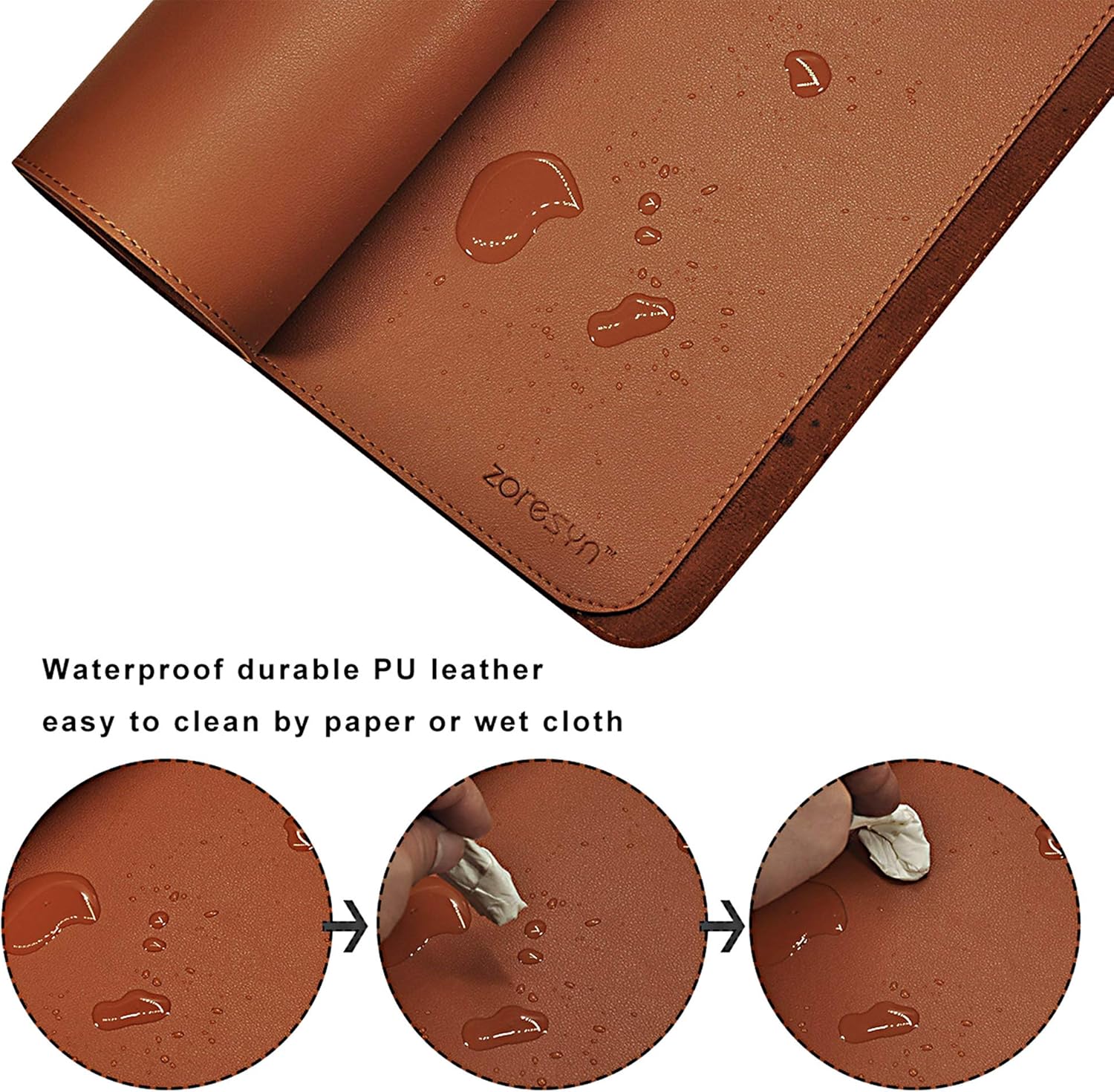 ZORESYN Подложка за бюро 170 x 70 см (кафява) - XXL PU кожена подложка за домашен офис и конференции - неплъзгаща се с подложка за мишка - функционална