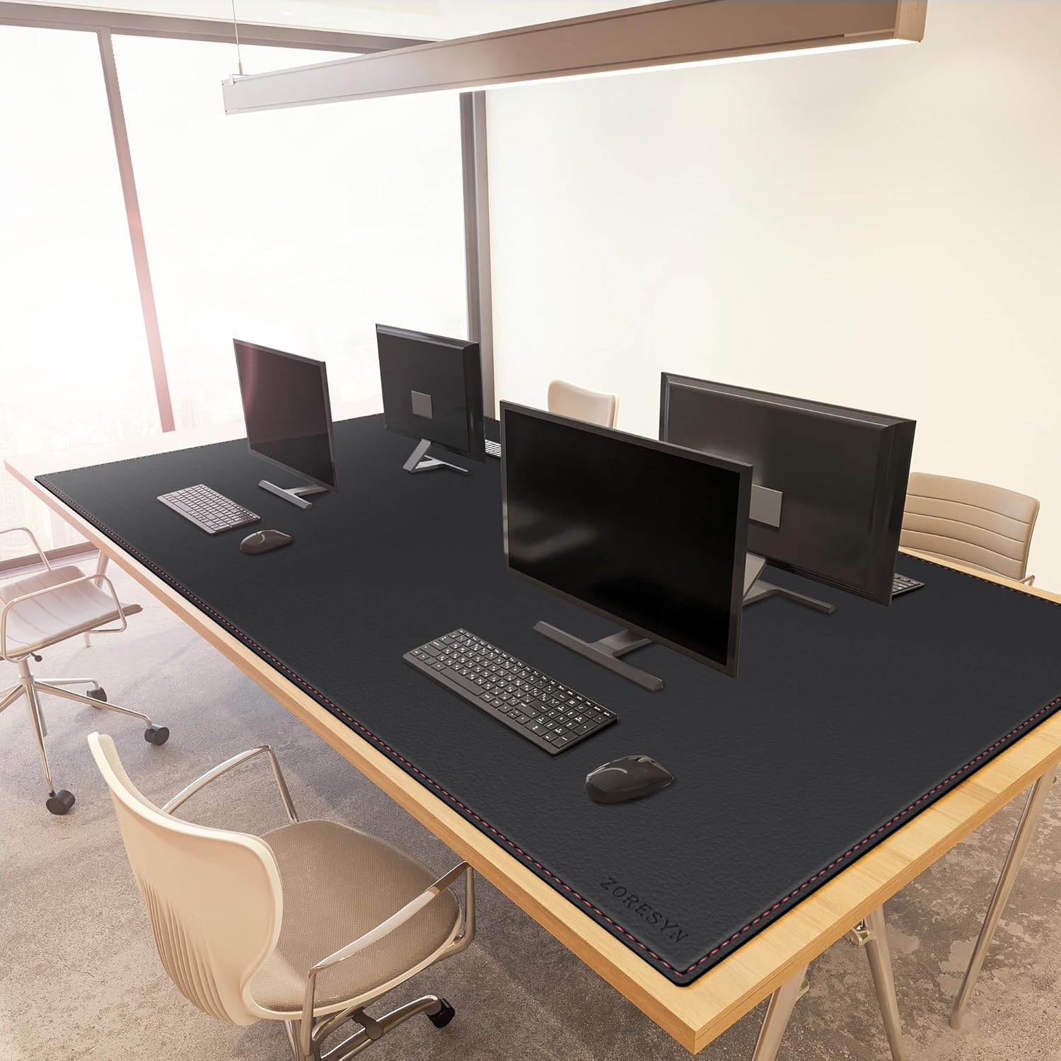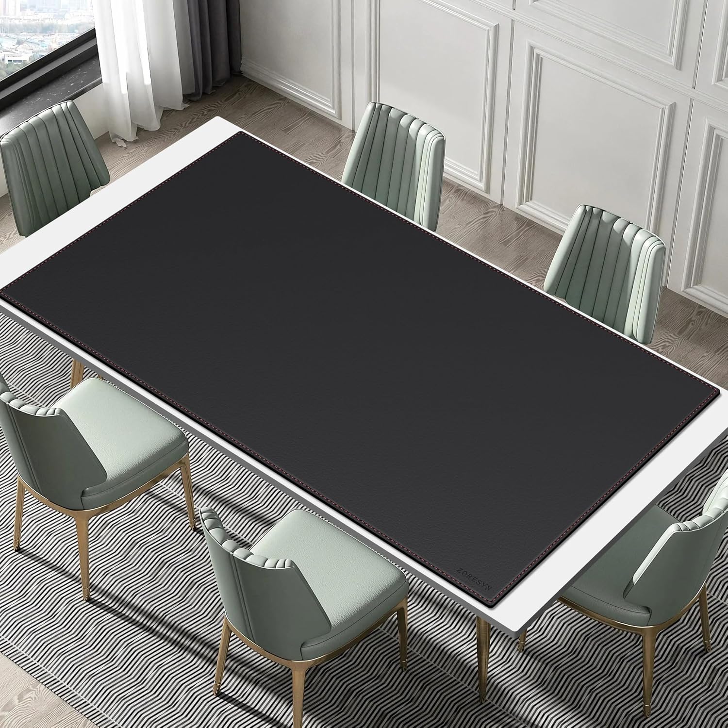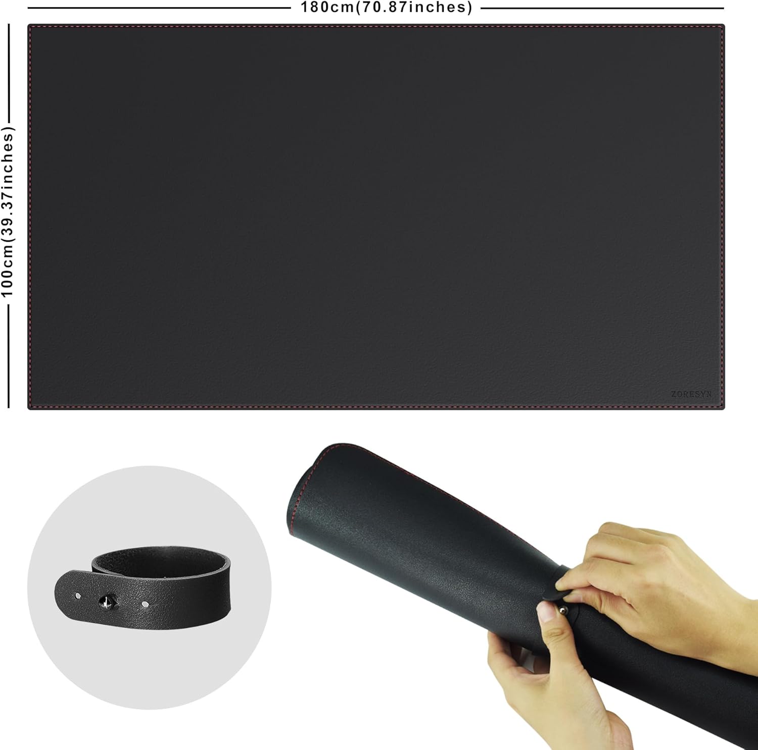 ZORESYN Подложка за бюро 180 x 100 см, черна - неплъзгаща се XXL подложка за мишка от изкуствена кожа | Голяма защитна подложка за маса за игри и офис | Водоустойчива подложка с велурена основа