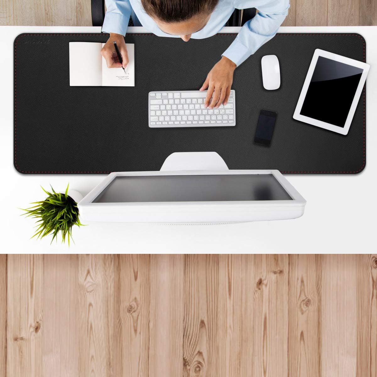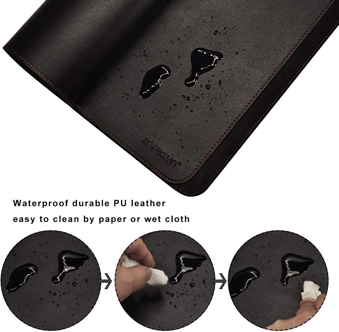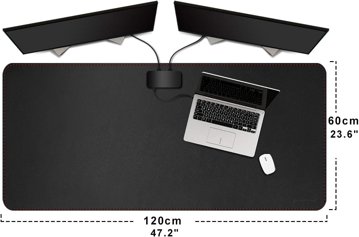 ZORESYN Подложка за бюро, изработена от PU кожа [Черна] - XXL протектор за маса (120 x 60 см) Водоустойчива подложка за бюро с нехлъзгаща се долна страна - Офис подложка, подложка за бюро, подложка за мишка за домашен офис