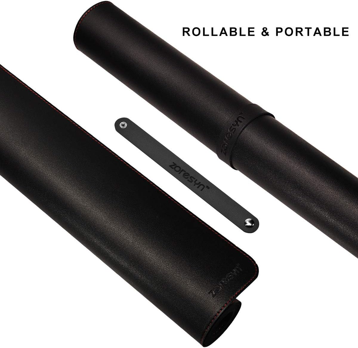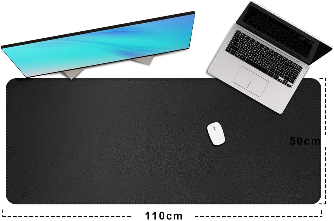 ZORESYN Подложка за бюро от PU кожа XXL 110 x 50 см - Неплъзгаща се офис подложка с рол лента, премиум протектор за маса за игри и домашен офис - Черна - Водоустойчива и устойчива на надраскване