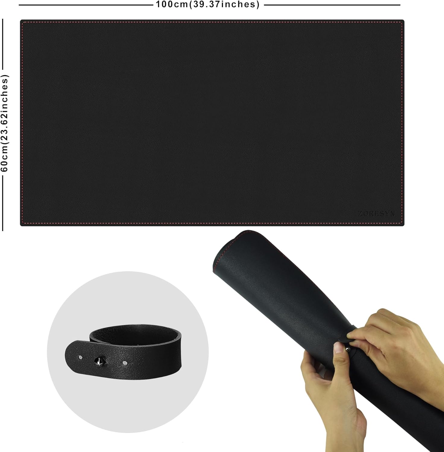 ZORESYN Подложка за бюро, PU кожа, 100 x 60 см, Подложка за маса, Неплъзгаща се водоустойчива подложка за бюро, Подложка за мишка, XXL, Защита за бюро, Подложка за писане за офис или домашна употреба (Черна)
