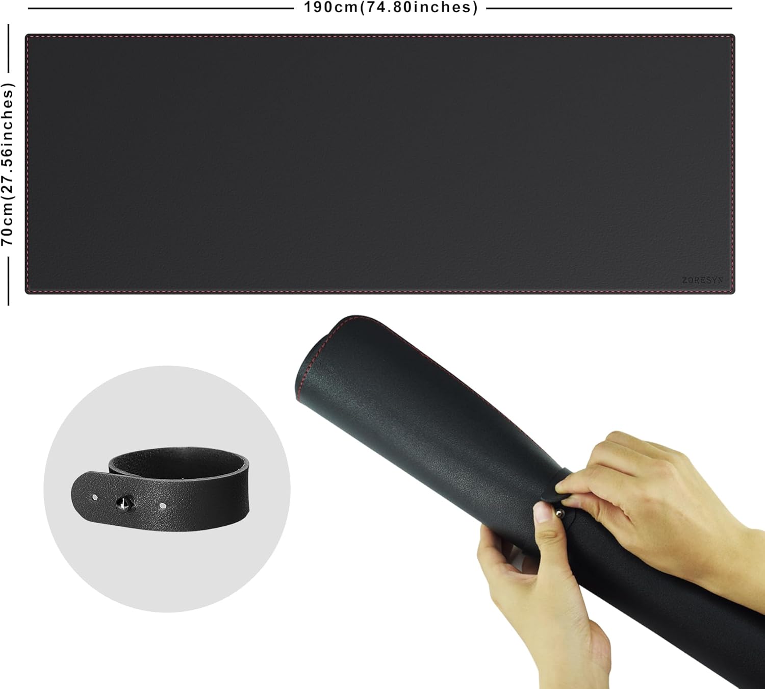 ZORESYN Подложка за бюро XXL 190 x 70 см - Черна, Неплъзгаща се подложка за маса със защита на ръбовете и възможност за почистване с кърпа, Подложка за мишка за офис и домашен офис, Многофункционални аксесоари за бюро