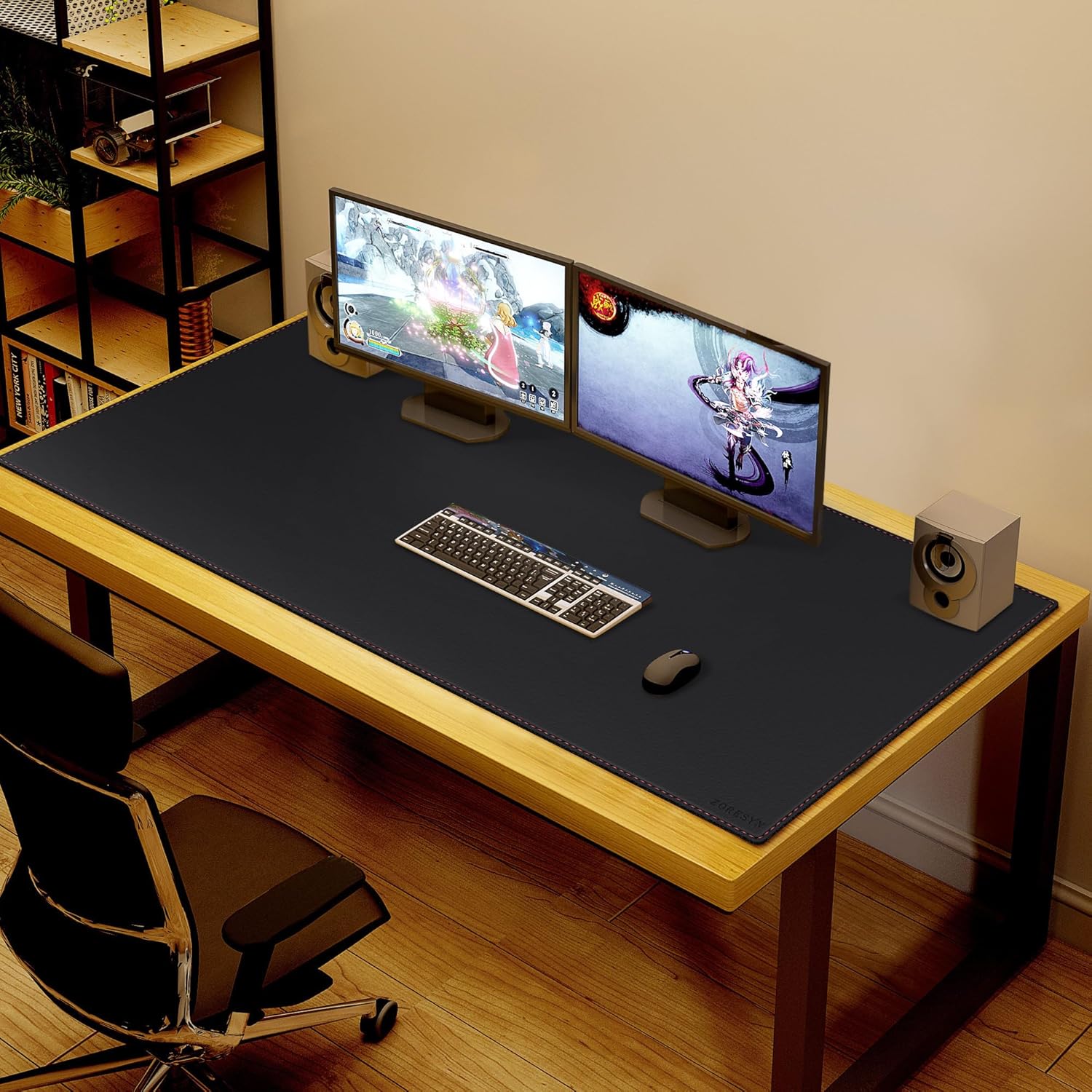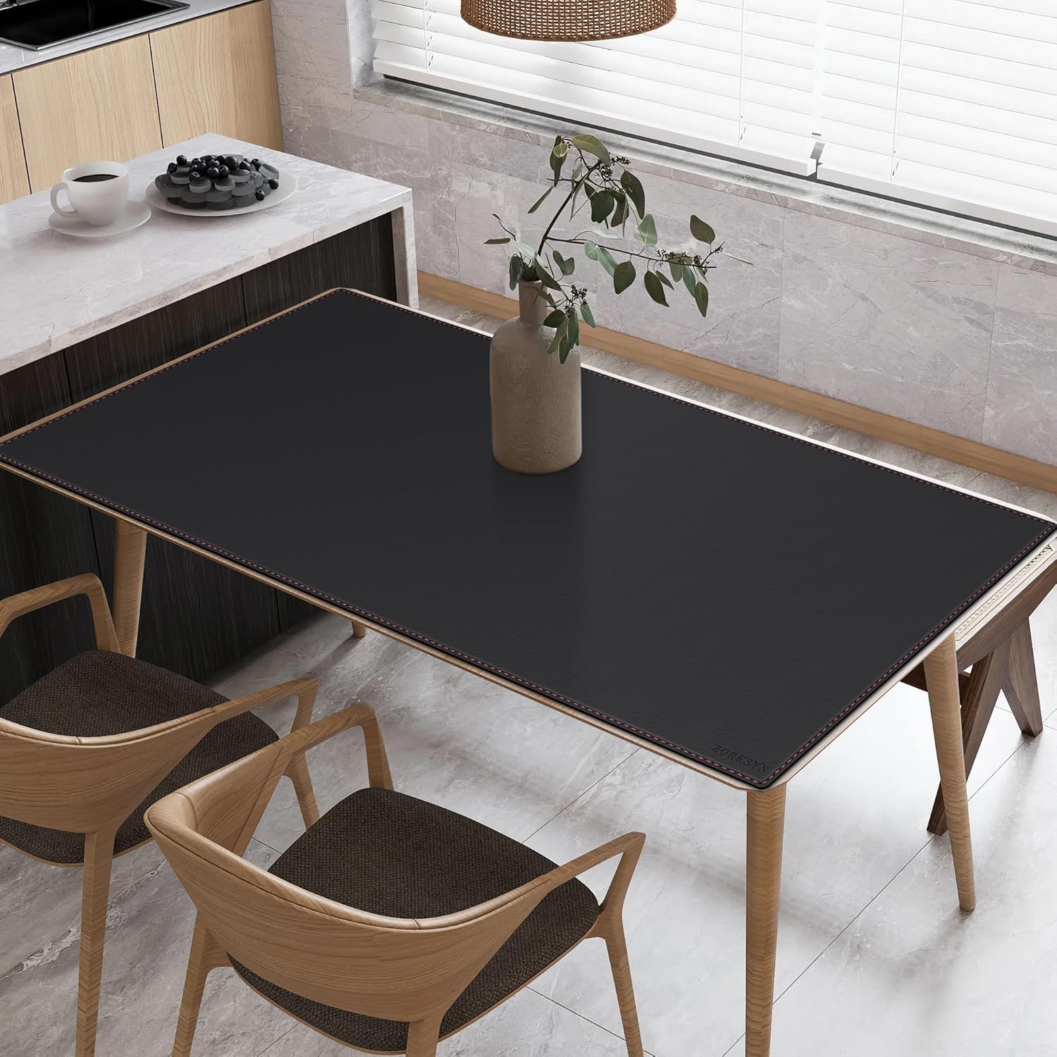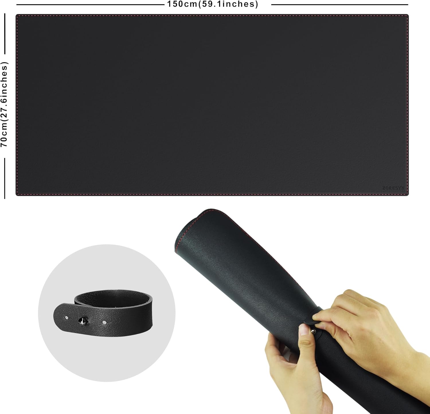 ZORESYN Висококачествена подложка за бюро от изкуствена кожа 150 x 70 см - Изключително широка офис възглавница, водоустойчива и неплъзгаща се - идеална за големи работни пространства (черна)