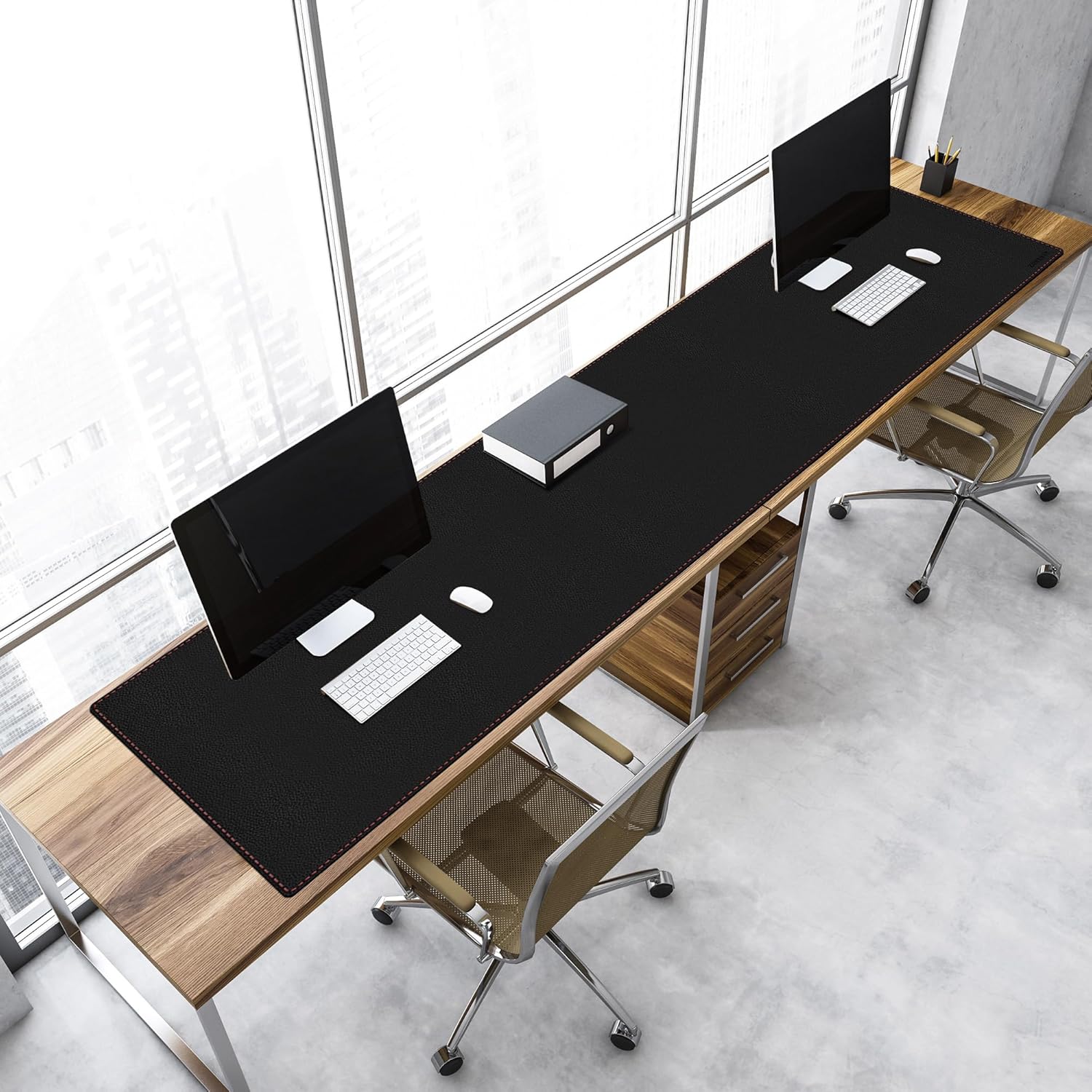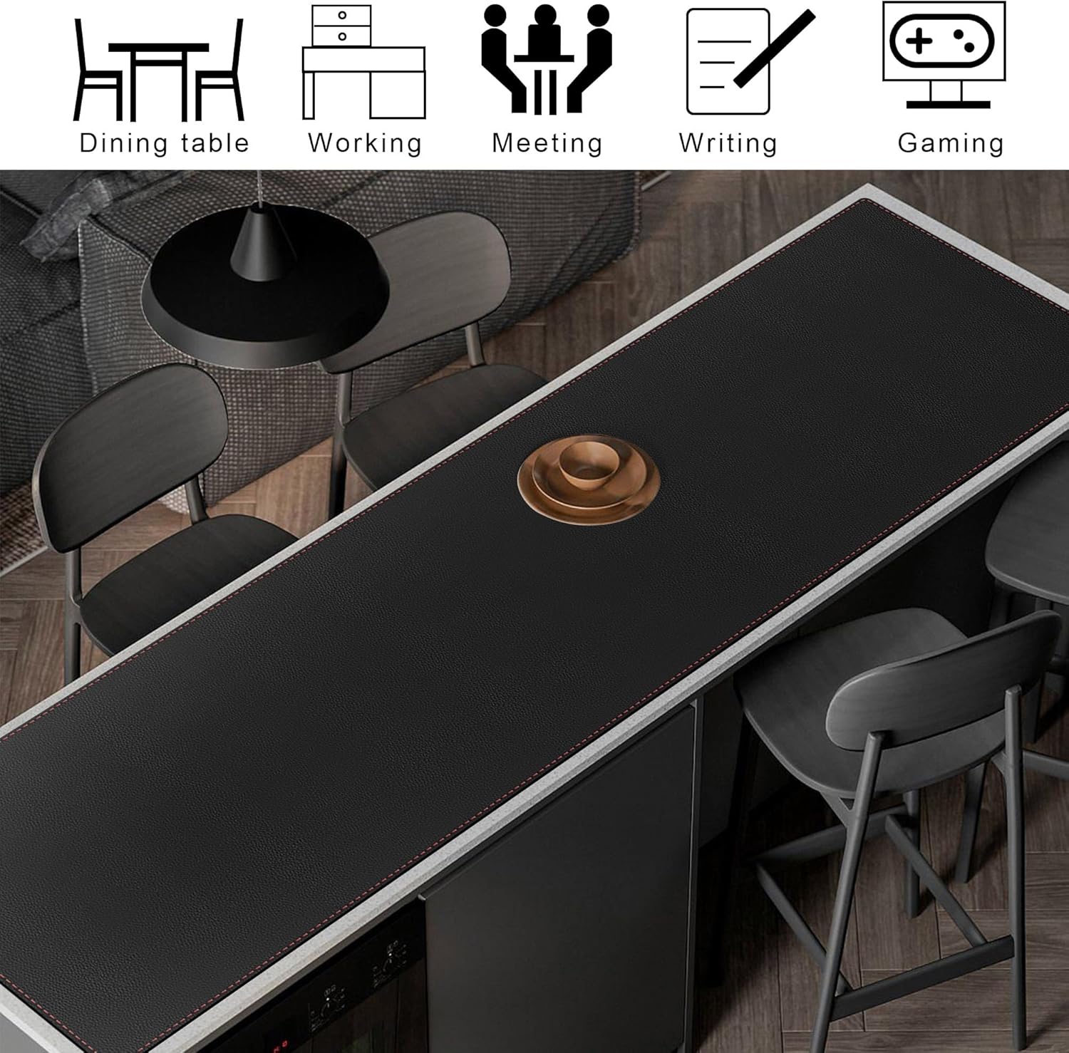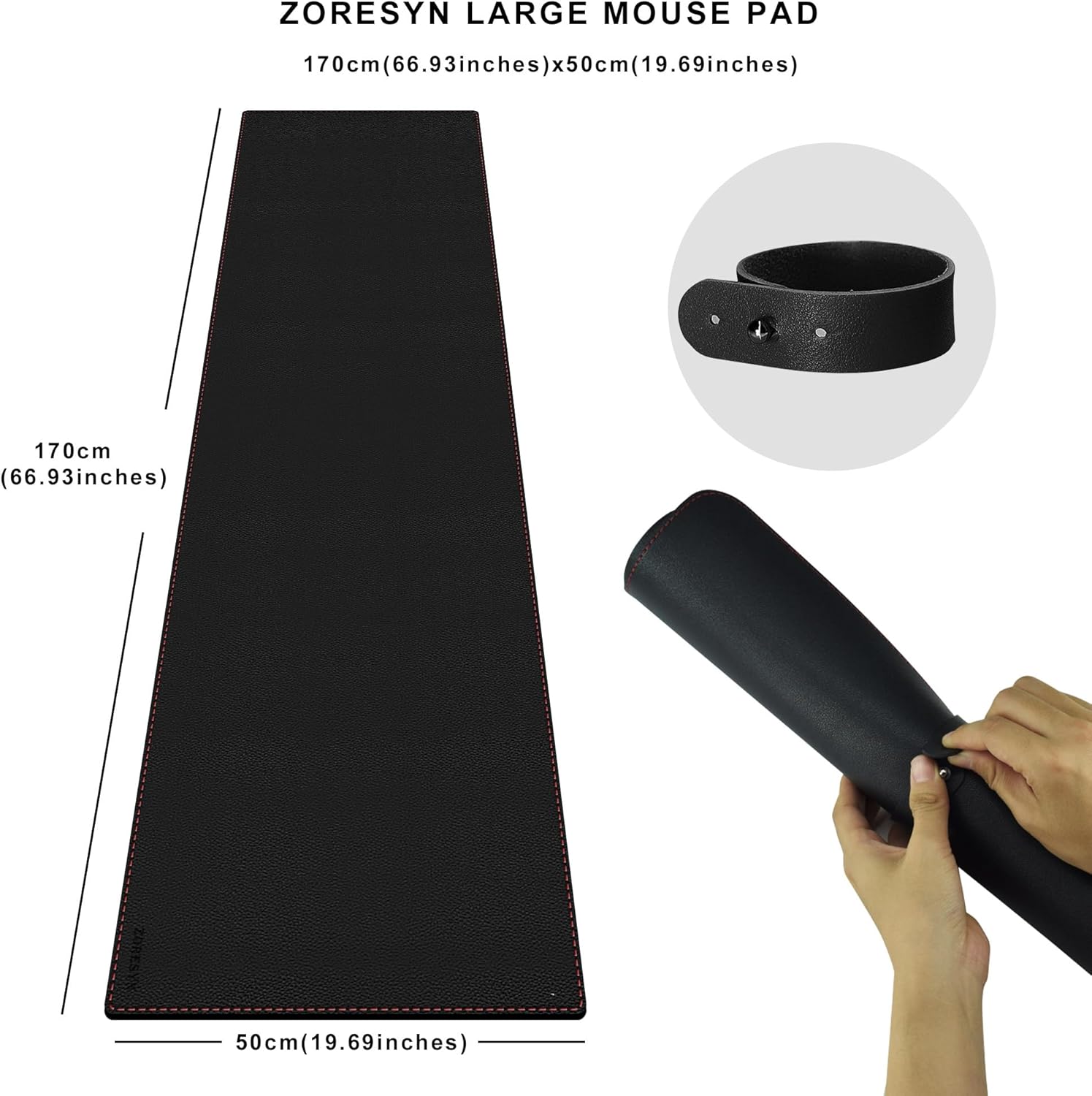 ZORESYN XXL подложка за бюро, 170 x 50 см, първокласна подложка за маса от PU кожа с нехлъзгаща се долна страна, водоустойчива подложка за мишка за игри и офис, протектор за бюро за стъклени и дървени маси (черна)