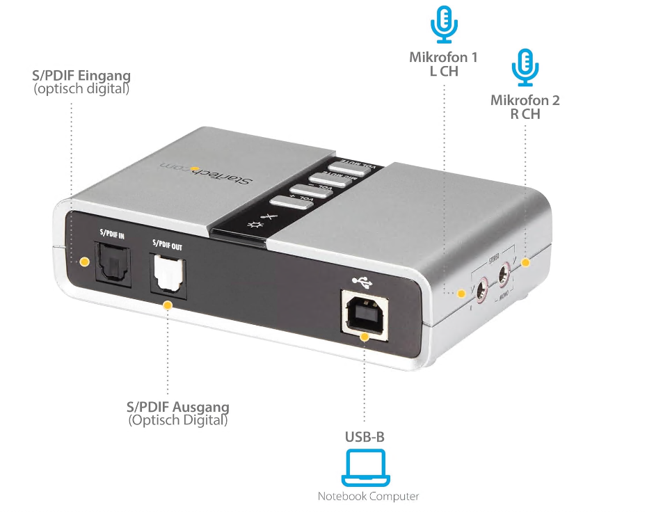 Звукова карта StarTech.com USB 2.0 Soundbox 7.1, адаптер - Външна USB звукова карта с SPDIF Didital Audio (ICUSBAUDIO7D)