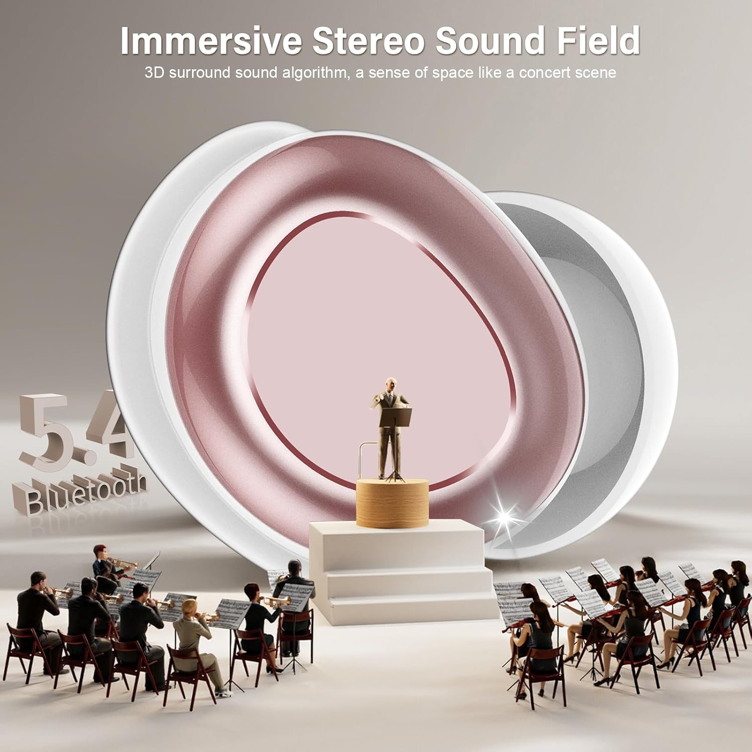 ZYHKON Мини слушалки с HiFi звук/5 режима на еквалайзер/ENC шумопотискане, безжични слушалки за спане настрани, розово златисто